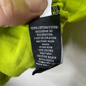 This Wedding Cake graphic t-shirt is designed for men in size small. It features a crew neck, short sleeves, and a regular fit, made of comfortable cotton material in a vibrant lime green color. The shirt showcases a humorous "Wake, Bake, and Cake" design with patches, adding a fun and playful element to the shirt.