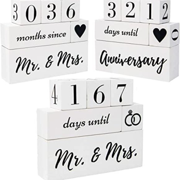 Wedding Countdown Calendar Block Engagement Gifts for Couples and His and Hers, Bride to Be -Includes Reversible Text Block for Marriage, Anniversary Celebration - Recently Engaged Gift Fiance Gifts.