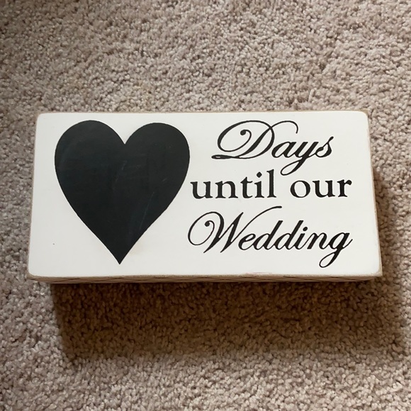 A cute little sign that helps you count down until your wedding day! You can write in the black heart with chalk and it erases easily!