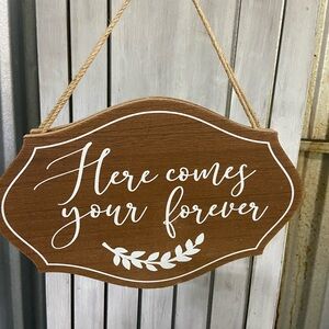 Elegant wedding decor signs in various styles. Perfect for adding charm to your special day. The "Reservation" sign I have 6 of, the Here comes your Forever" ( ring barrier carries) I have 2. See all photos of each item. These are brand new never used. Wedding was changed to Spring instead of Fall. If purchased separately they add up to $225. Also I have 2 big Ballon arches unopened and several other pieces I wasn’t able to add the pics for. PM me for those things if you want to see them. I am open to offers.