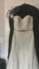 Strapless wedding dress worn in 2019. Has lace, sequin, and beading detail. Skinny jewel belt sewn on. I usually am a size 8 in dresses. Mostly pure white but some of the lace details are more creamy white. Needs some light cleaning on the bottom.