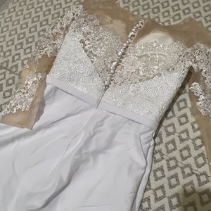 @lehuamamo I can put on and take pics! It’s too small across the breast and back for me so I can’t wear for my wedding in September, sadly. It’s so beautiful