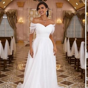 BRAND NEW A-Line/Princess Organza Ruched Off-the-Shoulder Sleeveless Sweep/Brush Train Wedding Dresses #HE16088HE0112