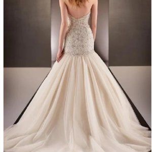 This wedding dress is the ML600DM style by Martina Liana. I bought this dress in 2015, it has not been professionally cleaned and is unaltered. I would describe it as a wedding dress featuring , a Fit-And-Flare silhouette, and a Curve, Sweetheart neckline.