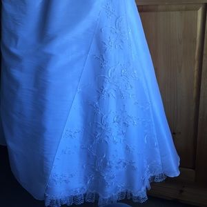 Gorgeous new wedding gown with beadwork by Mary's Bridal for a petite bride on a budget. Compares to size 0-2.