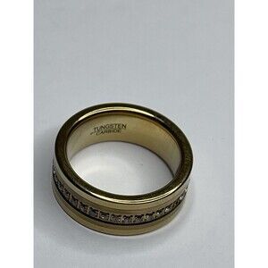 Wedding Eternity Band Gold Tungsten Carbide Cubic Zirconia 8mm Ring Size 9 FLAW