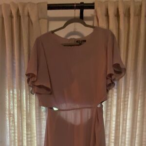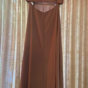 Beautiful dusty lavender color long with slit over left leg. Really flowy with a nice heavy weight so it creates beautiful movement.
