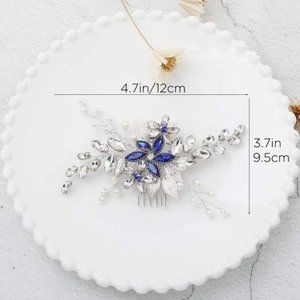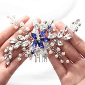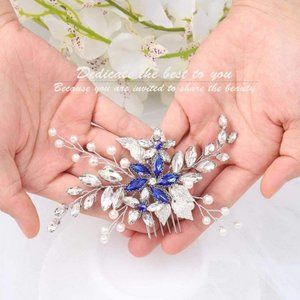 Wedding Hair Comb Blue Rhinestone Bridal for Bride and Bridesmaids