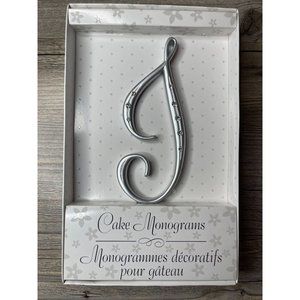 Wedding Large I Silver Finish Monogram Initial Rhinestones Cake Topper
