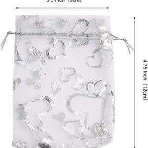 Wedding Organza Drawstring Bag 50 pc White/Silver with Hearts. BRAND NEW