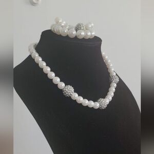 Wedding Pearl Necklace and Wrist Bead Set. WHITE. 🌴
