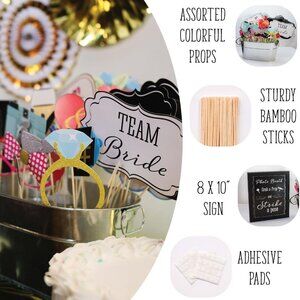 Perfect Wedding and Bachelorette Party Selfies: These wedding picture props are the perfect addition to your wedding photobooth. Set includes 30 props, one 8x10" sign, 45 adhesive pads, and 35 sticks.