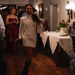 I changed into this fun dress for my wedding reception. The dress packs some drama with its fringed sleeves and slight shoulder padding. It is the perfect balance of fun and sexy. I could not had a better time in this dress. I am tempted to keep it for other occasions, but it deserves another debut. It worked out well as a reception dress, but I can also see it at a music festival.