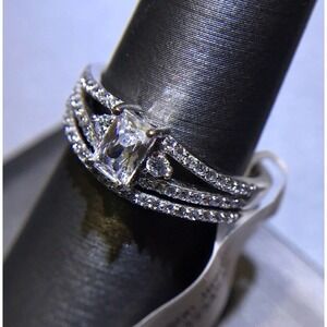 Wedding Set White Multi Stone Sz8.75 Silver 925 NWT (All Stones Simulated)