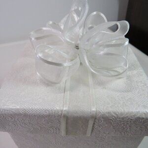 Wedding White Gift Box with Ribbon Bow (extra strong w embossed design)