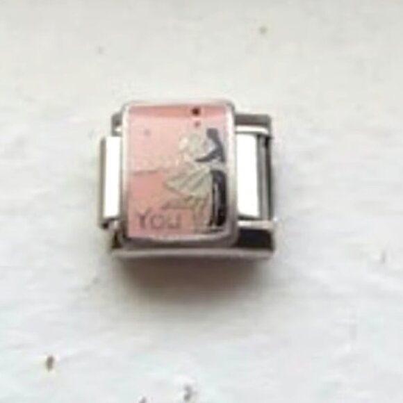 New never worn 9mm stainless steel Italian charm bracelet link with an enamel wedding couple with I Love You on it.Fits all standard 9mm Italian charm bracelets.Thanks for looking!