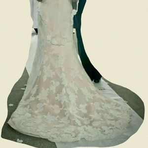 David's Bridal size 16 wedding dress with jacket and vail include. Great condition