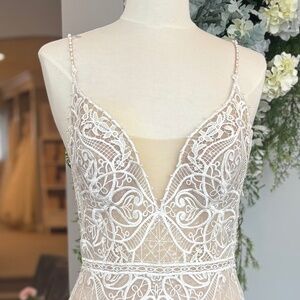 Gorgeous Chic Nostalgia wedding dress. Style “Skadi” Boho style, fitted dress, twinkly sequins. Size bridal 10 (bridal sizing runs small!) Sample gown, so has tags but has minor imperfections shown in pictures!
