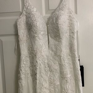Wedding gown bought from Nana Macs boutique. Size large. It is now out of stock. NWT. Asking what I paid ($320). Fits tts. Smoke free home.