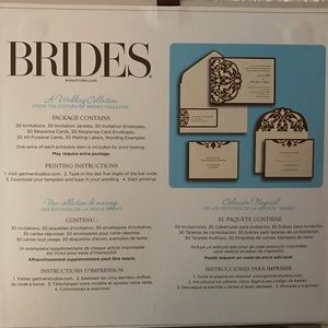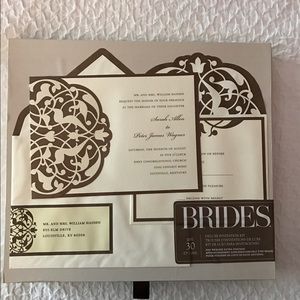 6 sets of 30invitations available (180 invitations total). Brides brand from Michael's. The thick cardstock stationery gets tucked into a coordinating pocket, creating a perfect package for your day-of details.