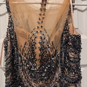 Navy / Nude beaded gown in great condition. Only wore once. Has detachable skirt and slit in front. Size 8. Open to offers❤️