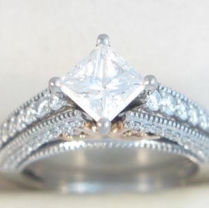 White gold size 7 and 2.16 carrot certified diamonds hand crafted beautiful design paid 6800.00. I just really need to sell it