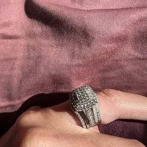 My loss is your gain. Beautiful 14 kt white gold 1.5 diamond kt wedding ring with wedding band. Absolutely stunning in the natural sunlight. Do have paperwork on both rings.