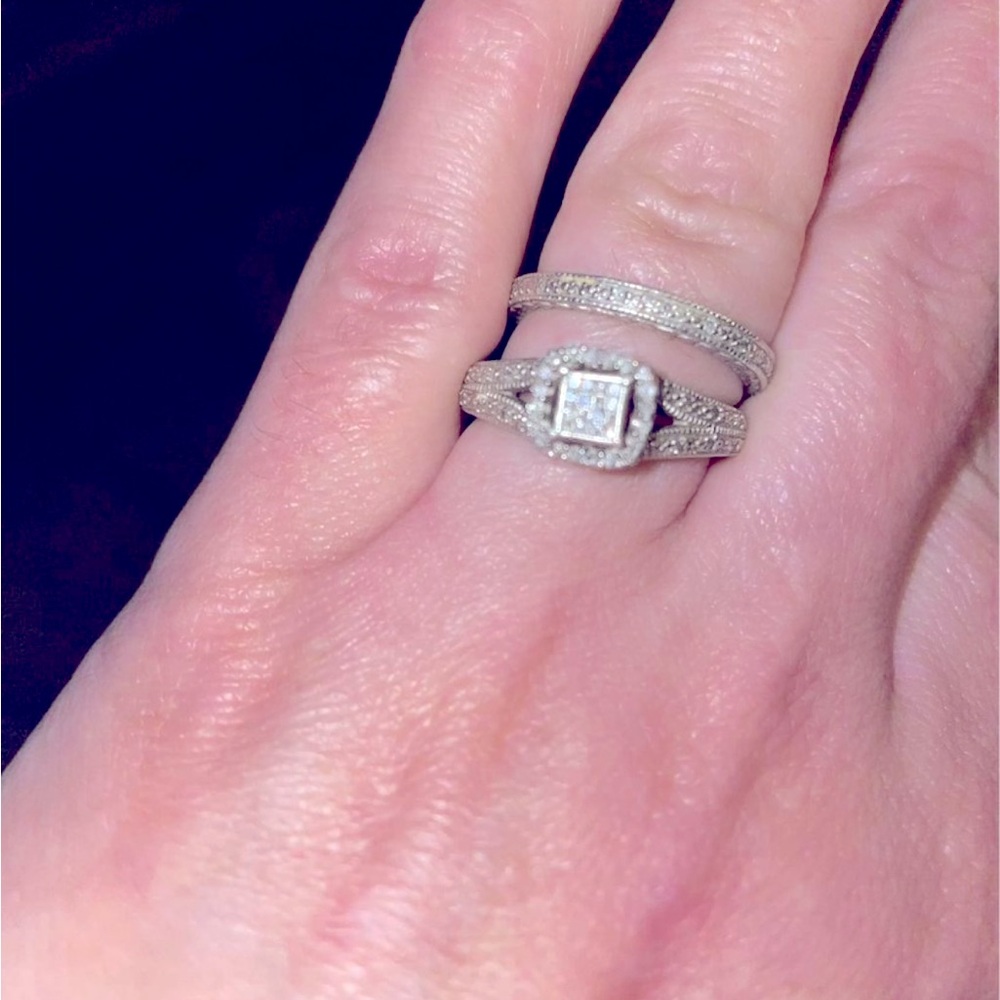 Beautiful wedding ring set white gold and diamonds size 7 can be resized
