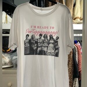 Worn a few times. ’m ready to party tee and for ever! This is back but does say forever on front small on side