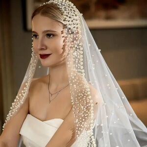 Wedding Veil, Bridal Accessory, Pearl Veil, Long Veil, Elegant Veil, Classic Veil, Tulle Veil, Luxury Bridal, Wedding Ceremony, Bridal Elegance, New Bridal Veil, Floor Length Veil, Designer Veil, Bridal Couture, Timeless Bridal Style