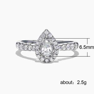 Wedding/Engagement Crystal Clear Shiny Silver Water Drop Diamond Ring,…