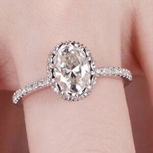 "Wedding/Engagement Oval Flower Dainty Gemstone Silver Ring for Women, VIP431