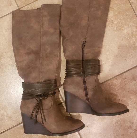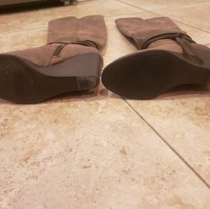 Fabulous wedge riding boots. Rustic brown suede material. Worn once. Only flaw shown in last pic. Practically new. Make an offer!