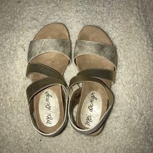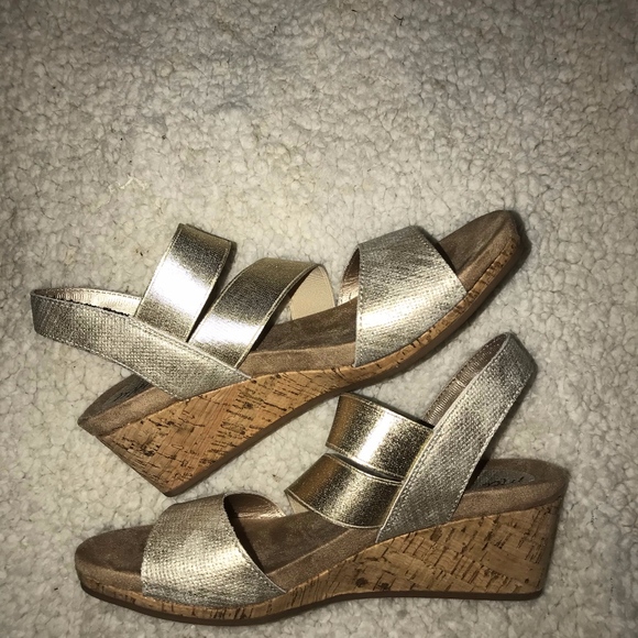 These gorgeous wedges are a perfect match for almost any outfit! They are a smaller size , 5 1/2 , I can't help my feet being so tiny! They are strapped with an elastic back to help keep the shoe on. Ive only wore them once but there is no damage or scuffs on these shoes.