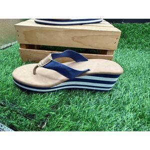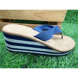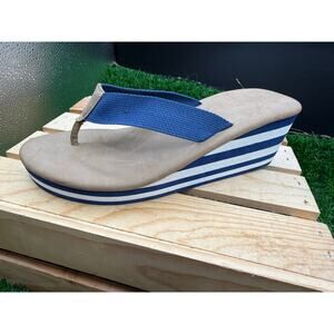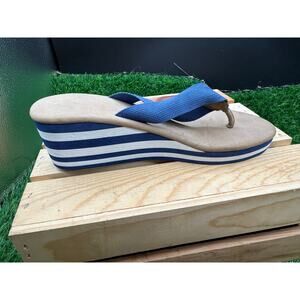 -Wedge Sandals- Tan/Blue/White Stripe-Size 7WAprox