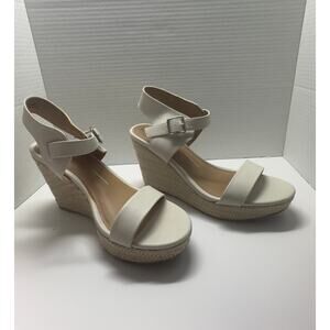 Elevate your warm-weather style with these Report wedge sandals. The off-white ankle straps provide a subtle, yet sophisticated touch, while the buckling closure ensures a secure fit. The cork platform and high wedge heel offer an on-trend lift, perfect for dressing up any outfit. Crafted for comfort and fashion, these sandals feature a cushioned insole and an adjustable strap for an customized fit. The almond toe shape and cap toe design add a modern flair, making these wedges a versatile choice for any wardrobe. Whether it's a day at the office or a night out, these shoes will carry you with elegance and ease.