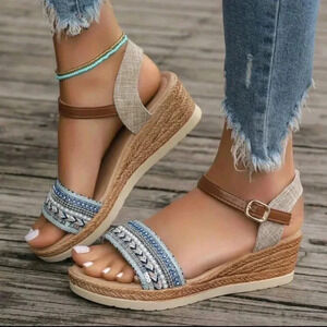 Wedge SandalsWith Waterproof Platform,Summer Fashionable Thick HeelFlat Sandals