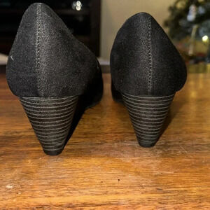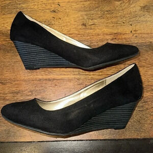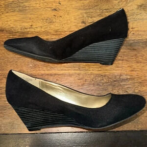 Wedge black suede look George shoes. 2 1/2” heel. EUC. All man made materials.