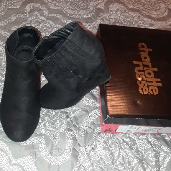 Nice black suede wedge booties, never worn in brand new condition.