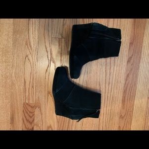 Black suede leather wedge booties