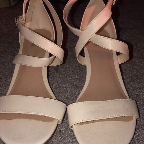 White, 1" heel, cross straps, worn for one day for 2 hours, like new