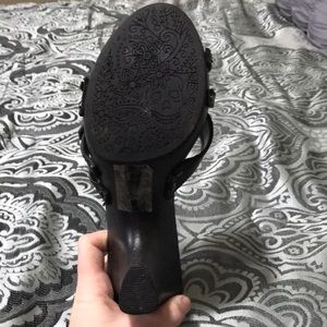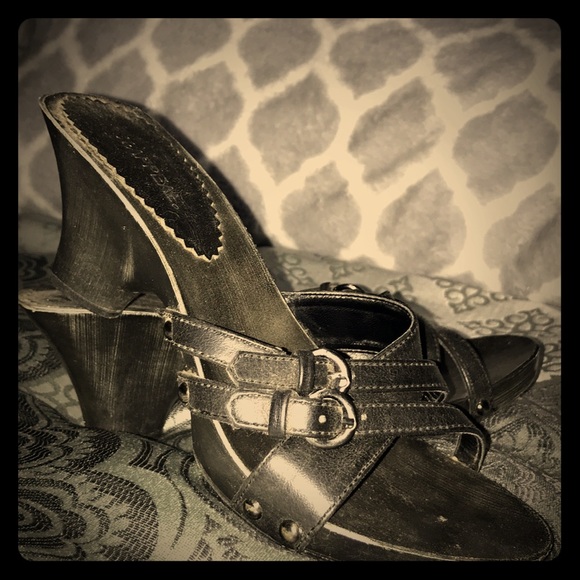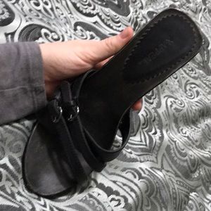 Three strap sandal with small wedge. Only worn a few times. Like new.