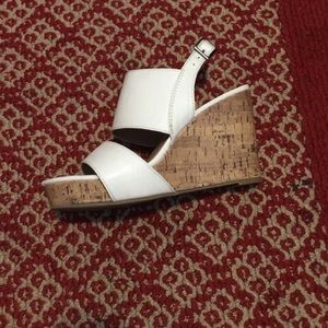 4" inch heel/ 1" platform Wedge sandals worn only once around the house for an indoor event. basically brand new. No prints, no damage, no scuffs. I love these comfy sandals - Dress up or down.