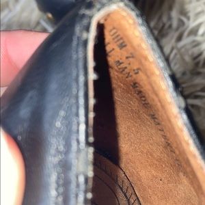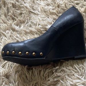 Black wedges with gold hardware at bottoms. In good shape. Very comfortable and look great with a lbd.