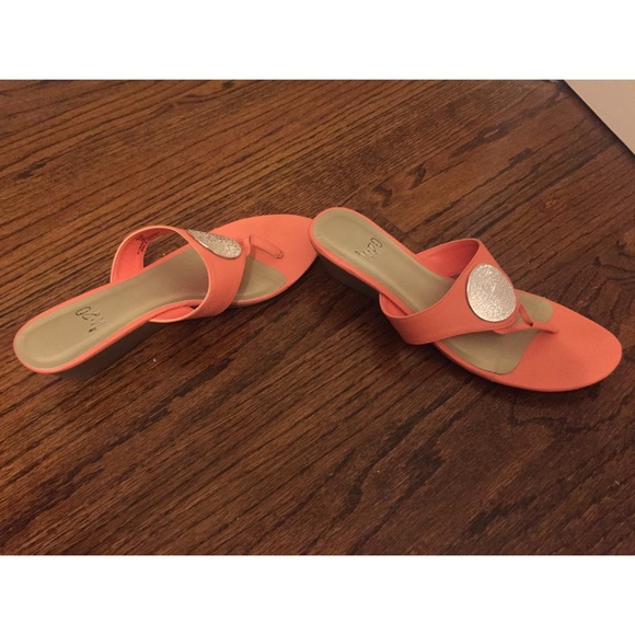 Salmon colored wedged sandals. Silver medallion detail on front. On,y worn a couple of times. Size 8.5. *make an offer*