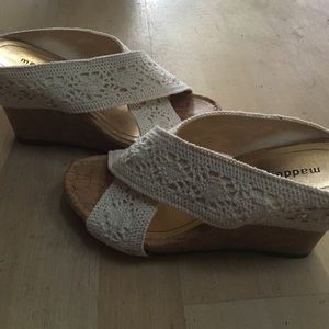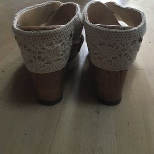 Off white thick strap wedges very comfortable. Only worn two times. They are a little more dressy then I am otherwise I probably wouldn't sell because they are super cute and I do like having them just in case but I'd rather someone gets good use of them.