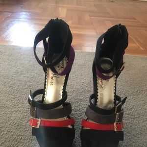 .... The colors within the wedge /platforms are black purple red and a bit of gold perfect for a girls night out
