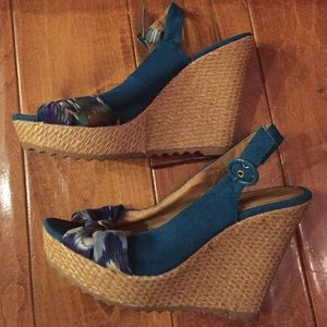 Teal with colorful bow wedges