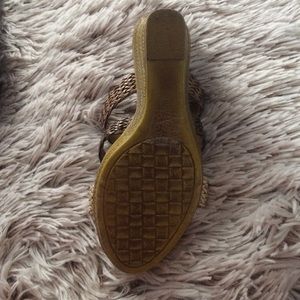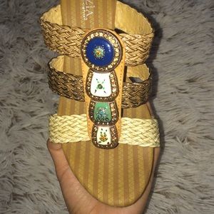 Brown color wedge at, with 3 straps in the front all different colors and beautiful decoration on the front. Size 36 which is a size 6 but fits more like a 5.5. Brand new, never worn but don't have the box anymore. *Make offers*