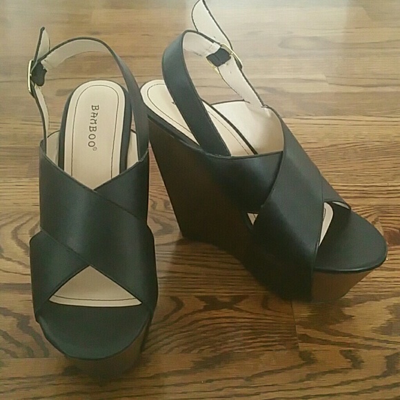 Brand new, never worn black heel wedges.